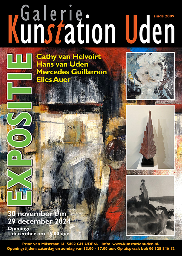 De expositie van december met 4 kunstenaars. Met Mercedes Guillamon, Hans van Uden, Cathy van Helvoirt en Elies Auer. De expositie is van zaterdag 30 november en duurt tot en met zondag 29 december 2024.